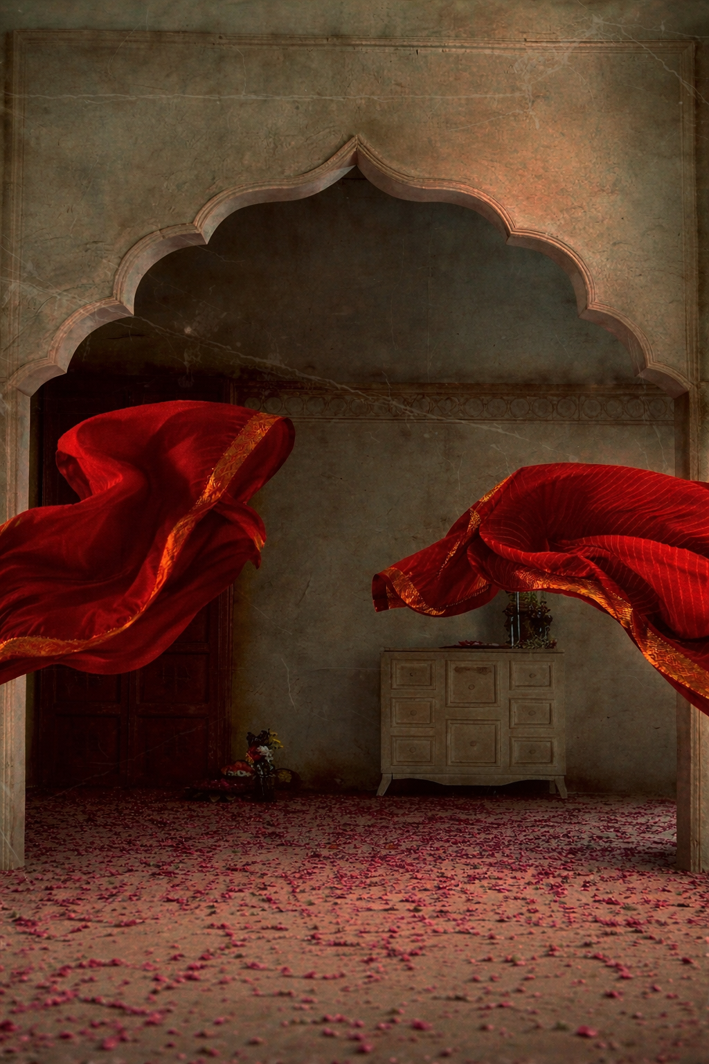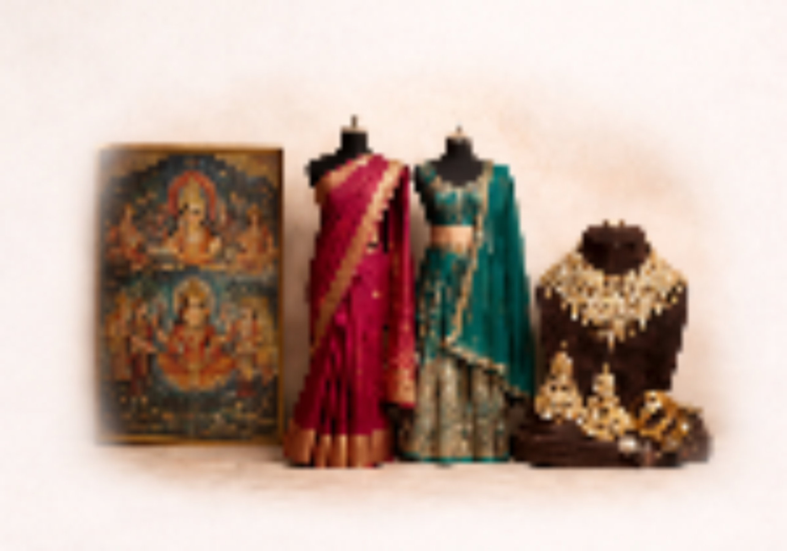 We work with carefully sourced fabrics, metals, and natural elements, chosen for their quality, authenticity, and cultural significance. Each material is selected to honour craftsmanship and longevity.